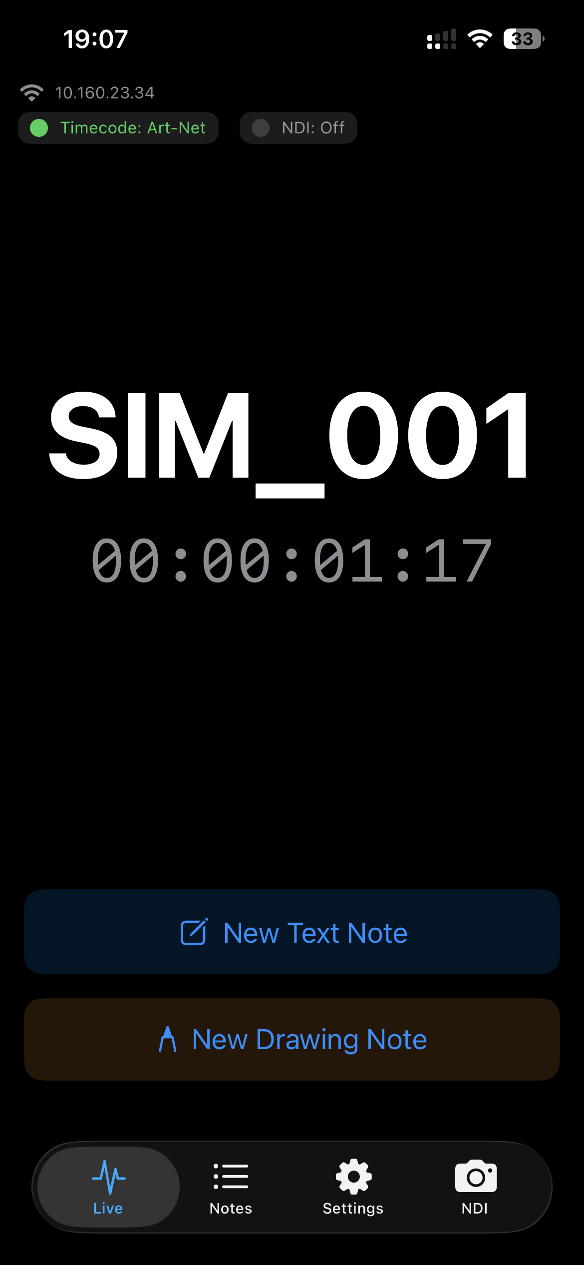 Take notes during rehearsal, show, or recording sessions, with each entry stamped by the current timecode from OSC or Art-Net sources.